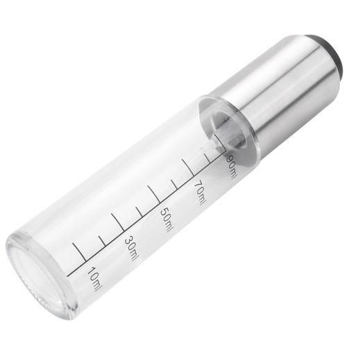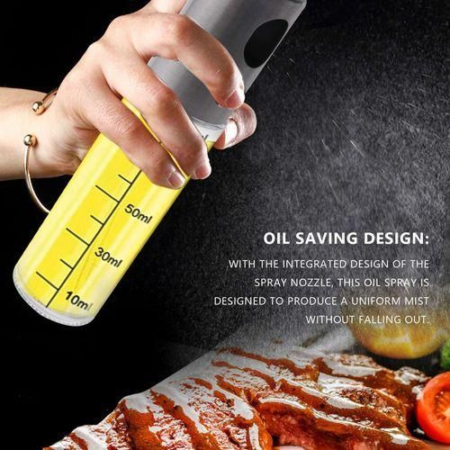 [Transparent Scale Design&Embedded Nozzle]: The measuring of this oil sprayer printing on the bottles,let you easier to grab oil and give food / pans a no-mess spray.Embedded nozzle isolate dust and insects.