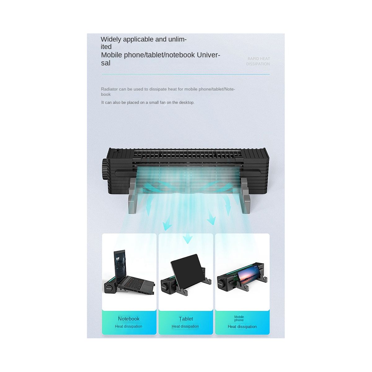 3. Eclectic use is not limited. Mobile phone/tablet/notebook universal radiator can be used for cooling of mobile phone/tablet/notebook or can be used as a small fan on the desktop