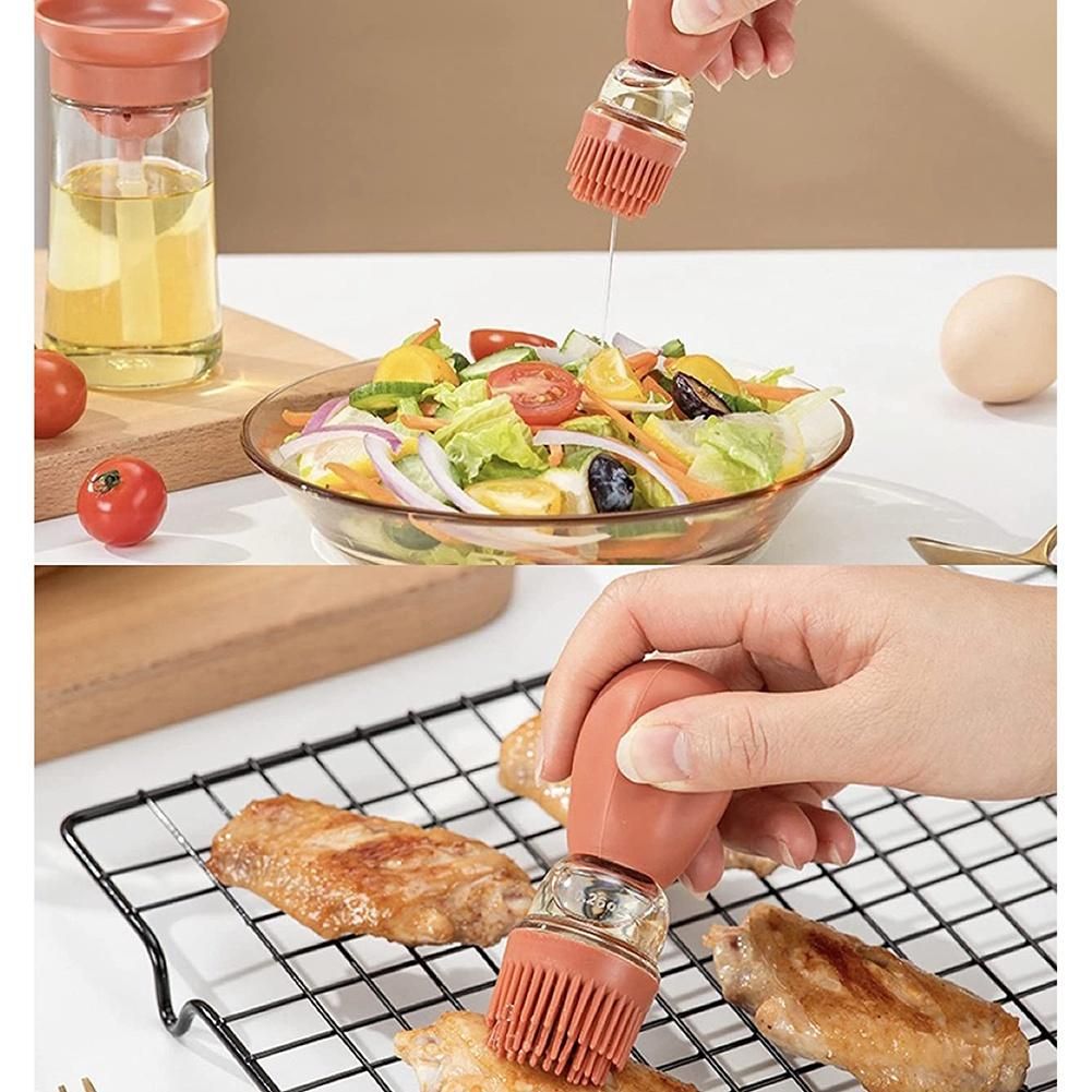 EASY TO USE: The measuring bottle with brush mouth itself is large, so you can easily pour oil, vinegar, chili oil, etc. You just need to pinch the dripper gently to suck the oil into the oil storage tank. Then you can apply it to your food accurately.