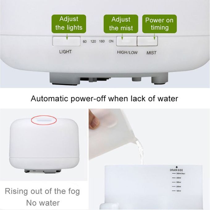 Des ription: The 0ML olor light aroma diffuser humidifier with remote ontrol an reate a moist and omfortable environment for you, and an also be used as a night light.