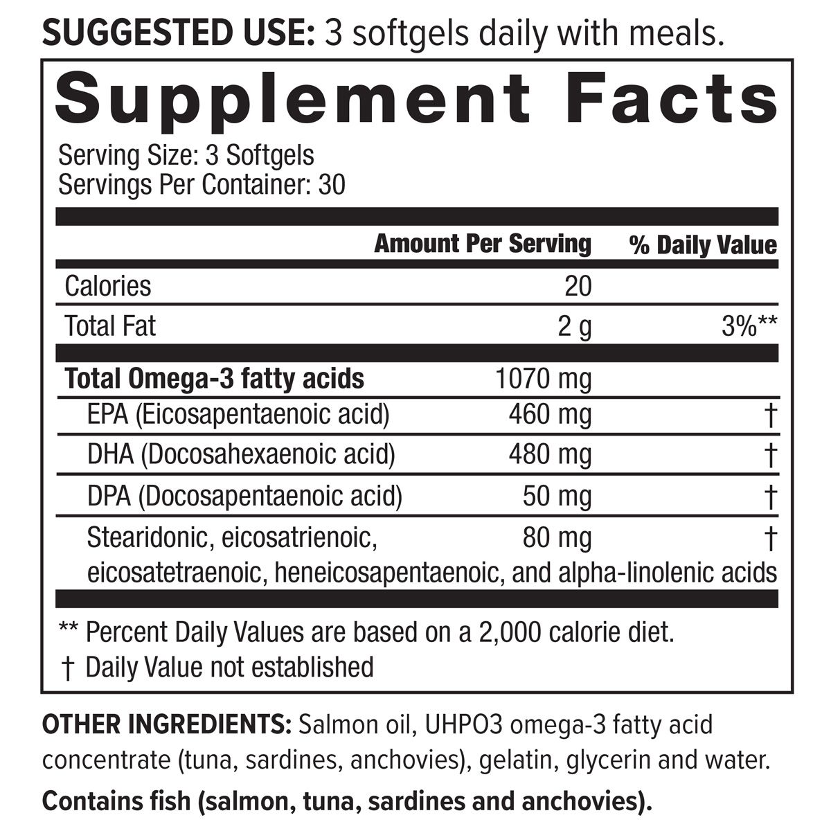 NEOLIFE Omega-3 Salmon Oil Plus - 90 Capsules (Single) It includes UHPO3-Ultra High Potency Omega-3 fatty acids-an exclusive GNLD technology that boosts, stabilizes and standardizes specific, health promoting omega-3 fatty acid levels while maintaining the whole food goodness of natural salmon oil. It's the first supplement of its kind to assure a standardized amount of all eight members of the omega-3 family involved in human nutrition.
