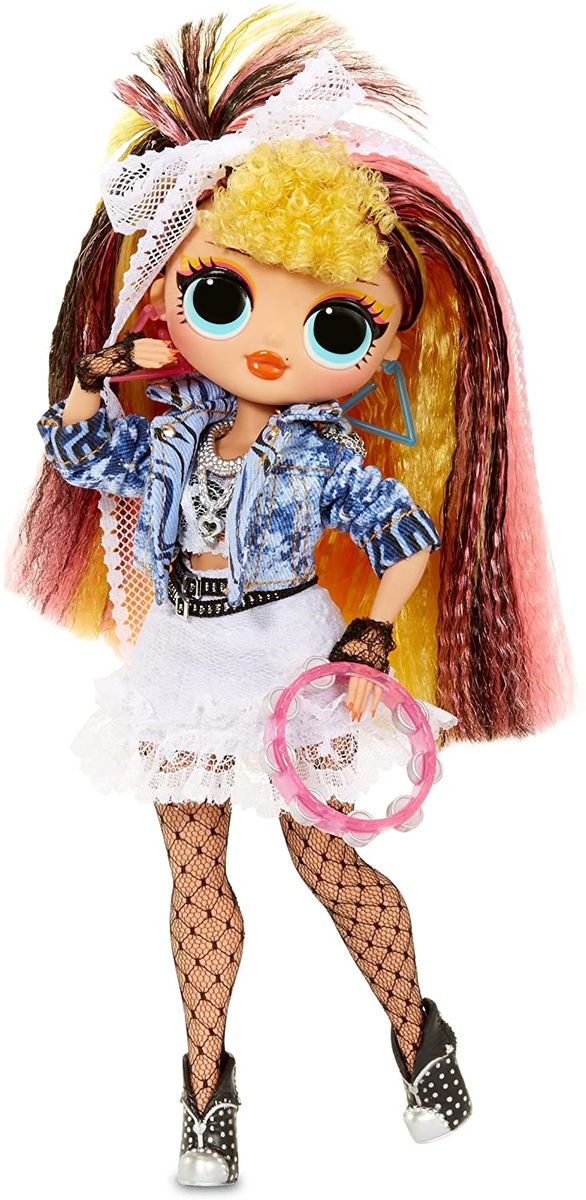 Unbox L.O.L. Surprise! O.M.G. Remix fashion doll - Pop B.B. - with 25 surprises. Pop B.B. is just a pop star fashionista, who loves to create unique fashion combos, like her cute denim jacket mixed with her frilly lace skirt. She has stunning features, beautiful, styled hair, and her own 80s-inspired style. She's the big sister to fan favorite L.O.L. Surprise! character, 80s B.B., and she's ready for the ultimate concert - the So Extra Tour. But she needs your help, because everything got remixed! Unbox the full-size record and play it on her record player packaging. It really plays a Pop B.B.'s pop piece of a surprise song. Then, get her ready for the show. Pop B.B. includes 2 complete fashion looks - but her 2nd outfit got remixed! Collect her BFF, Kitty K, to complete her look just in time to take the stage! She also includes music accessories, so she's ready for the concert. Have her strike a pose to show her off on her included doll stand. She also includes her magazine with the lyrics to her piece of the song. Collect all the lyric sheets from the whole L.O.L. Surprise! Remix line to reveal the whole song. Or, mix & match lyrics to create your own Remix. Each L.O.L. Surprise! O.M.G. Remix includes a fashion doll, 2 fashion looks, 1 pair of shoes, a shoebox, accessories, a hat box, a hair brush, a doll stand, a full-size record, a lyric magazine and a package that really plays music. Collect all 4 L.O.L. Surprise! O.M.G. Remix fashion dolls. Collect the whole L.O.L. Surprise! Remix line to collect all the song lyrics and complete the surprise song.