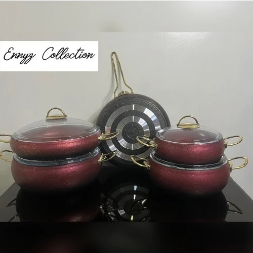 Buy OMS Non Stick Professional Cookware Set Casserole Pot - Red - 9pcs in Nigeria
