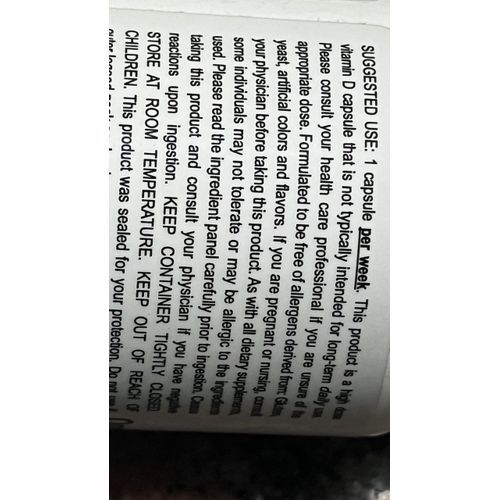 | Vitamin D3 (as Cholecalciferoll) | 1,250mcg (50,000IU) | 6,250% |
