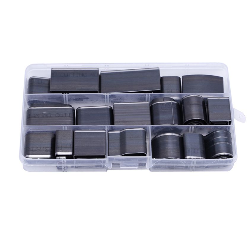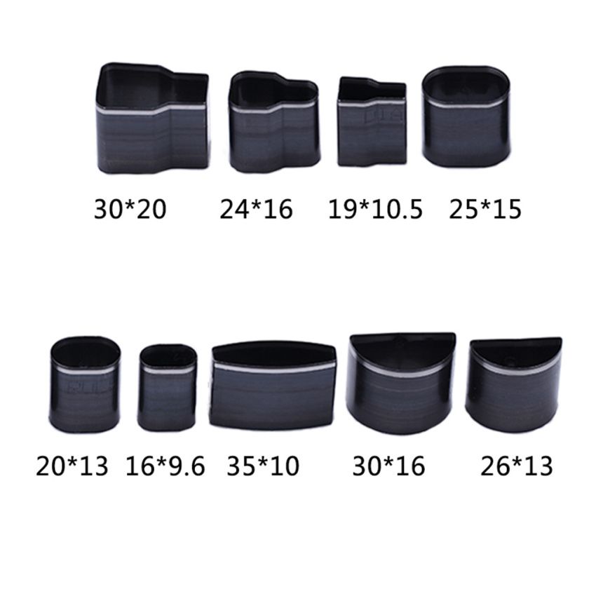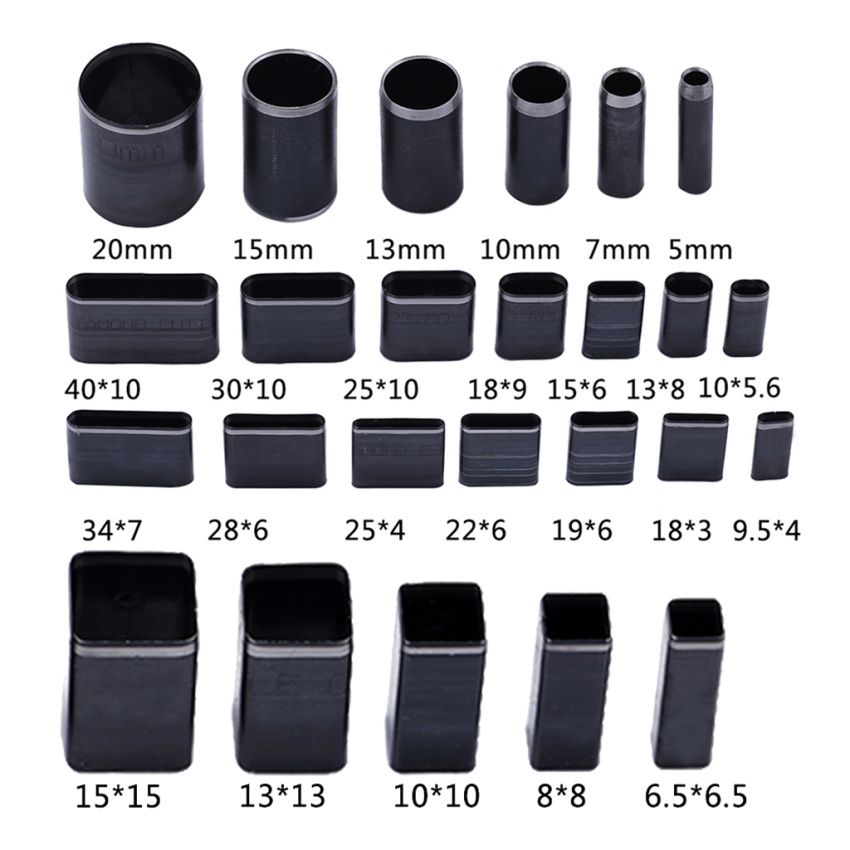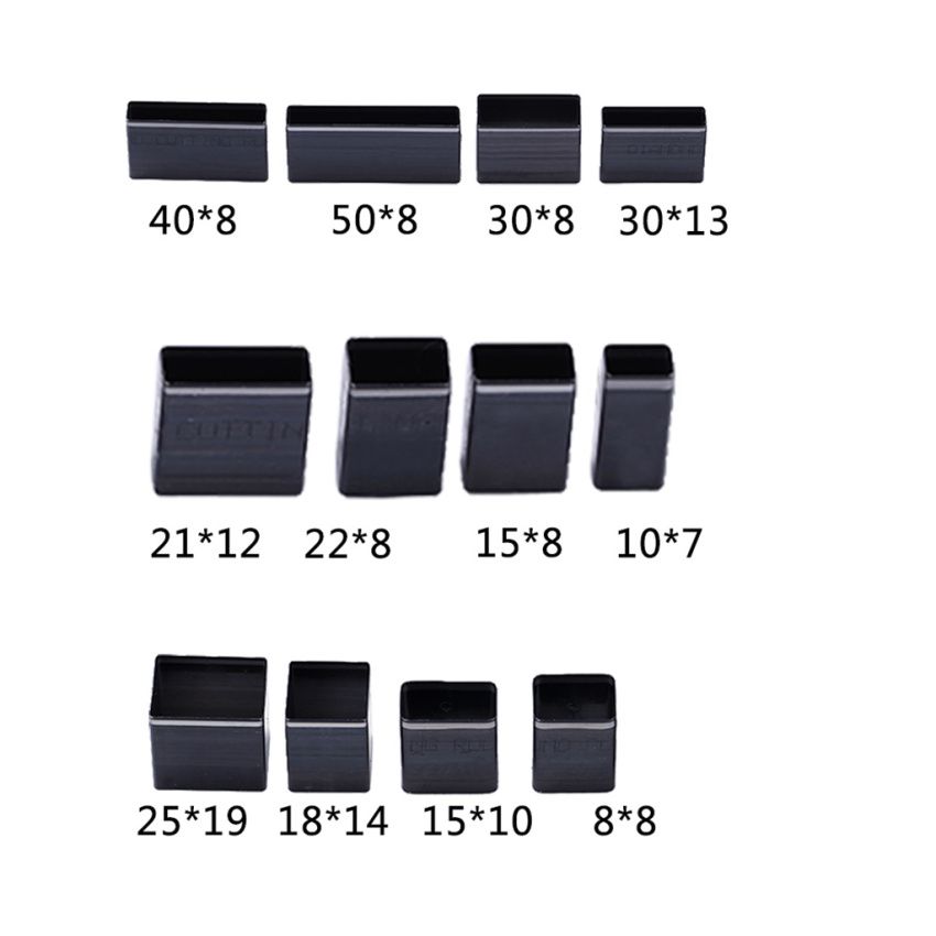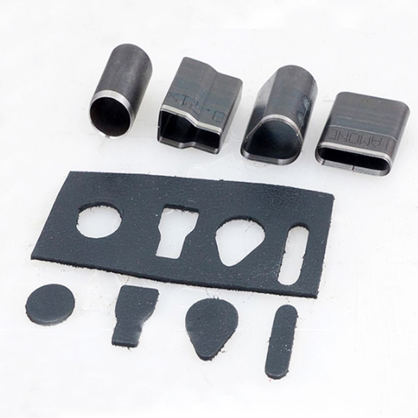 Made of HSS steel, which is high density, not easily deformed, durable.This punch set has 52 shape, like rectangle, oval, square, round, ect.The shapes are well formed, and the resultant cuts are crisp and straight, don't leave marks.Great for Handmade DIY, such as layered fabric, leather, polymer clay or jewelry, ect.Tips: Place a strong flat even piece of wood or board on top of the metal shapes and then hammer, it will not damage the metal shapes.