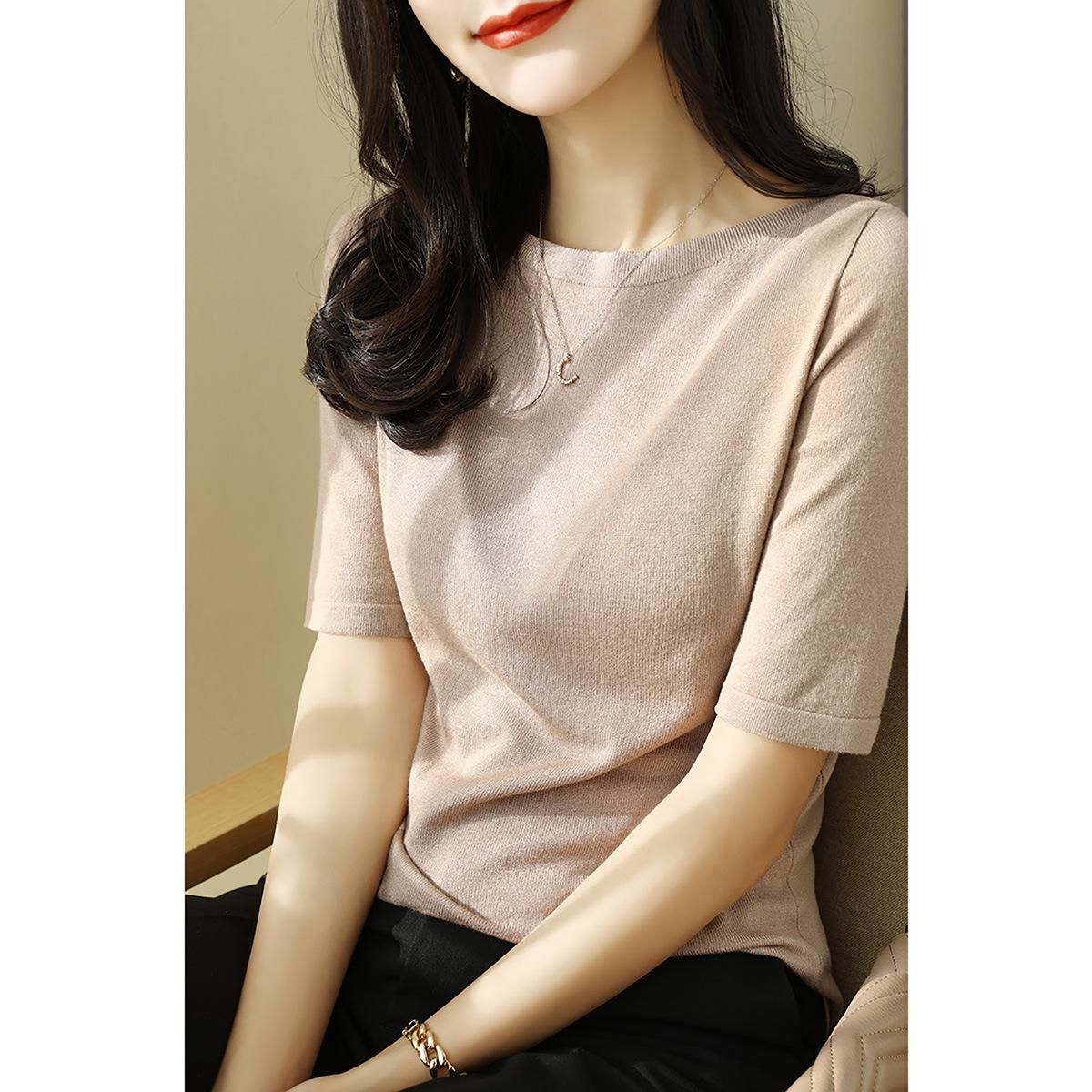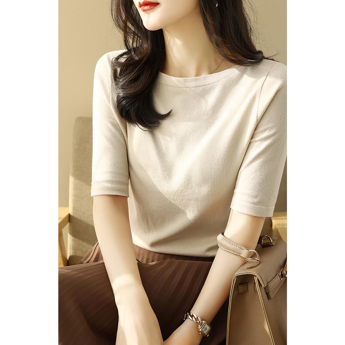 Buy One line collar temperament half sleeve thin t-shirt for women 2021 summer new short sleeved solid in Nigeria