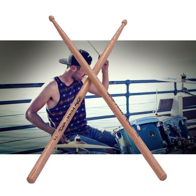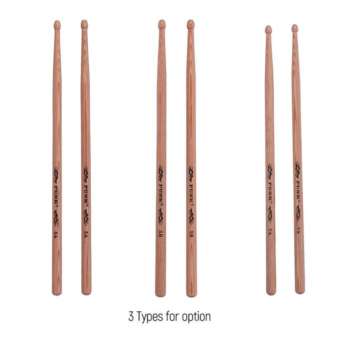 Standard wooden 5A drumsticks for drum set playing.
