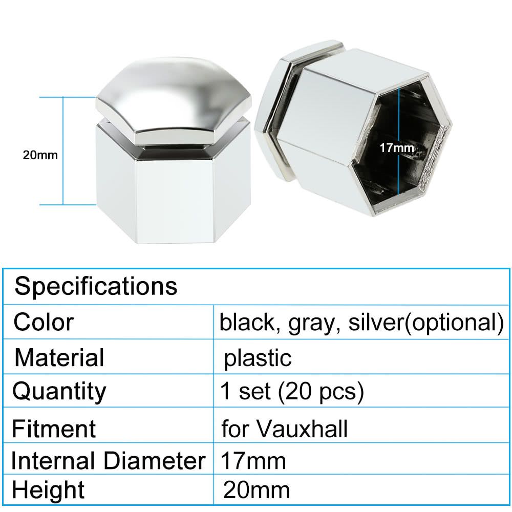 One set of 17mm Car Wheel Nut Caps for Vauxhall.