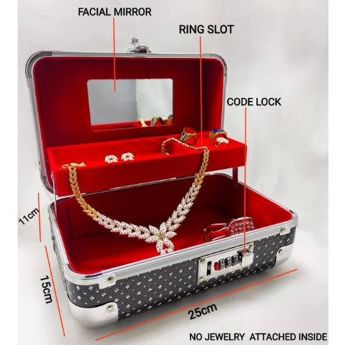 Buy One Step Diamond Crystalline Jewelry Cosmetics Storage Box With Security Lock - Black in Nigeria
