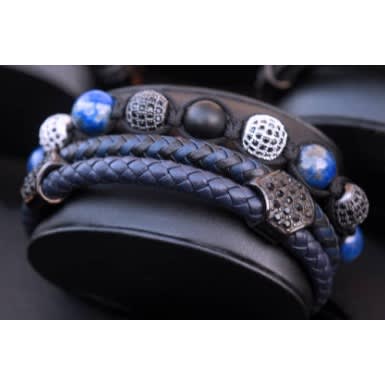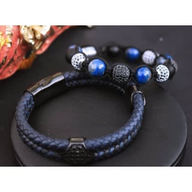 Buy Onikoyi Lapis Lazuli And Black Onyx With Leather Stack in Nigeria