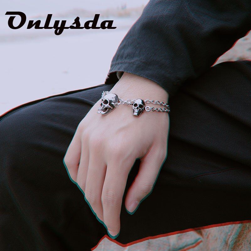 1 * Onlysda Stainless Steel Cool Link Chain Skull Bracelet Men