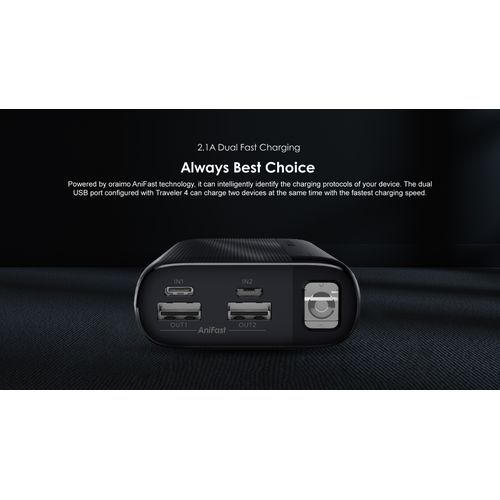 Type-c and Micro-usb dual input with oraimo's high-speed charging technology charge two devices at the same time, so all your devices are always ready to go.