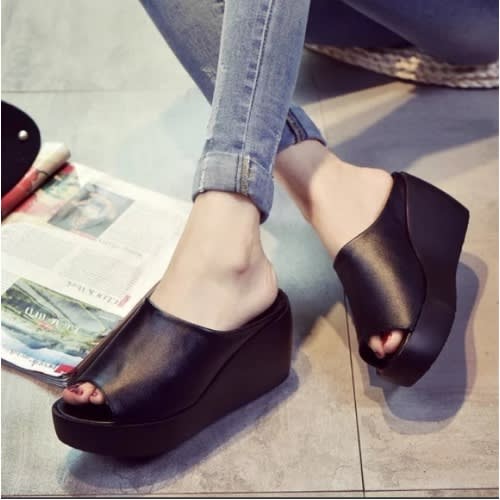 Buy Open Toe Wedge Slippers - Black in Nigeria