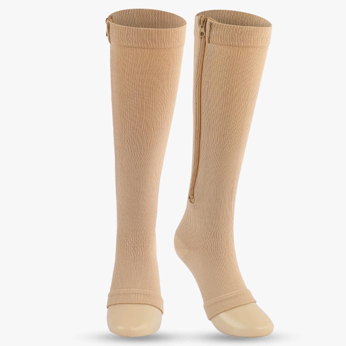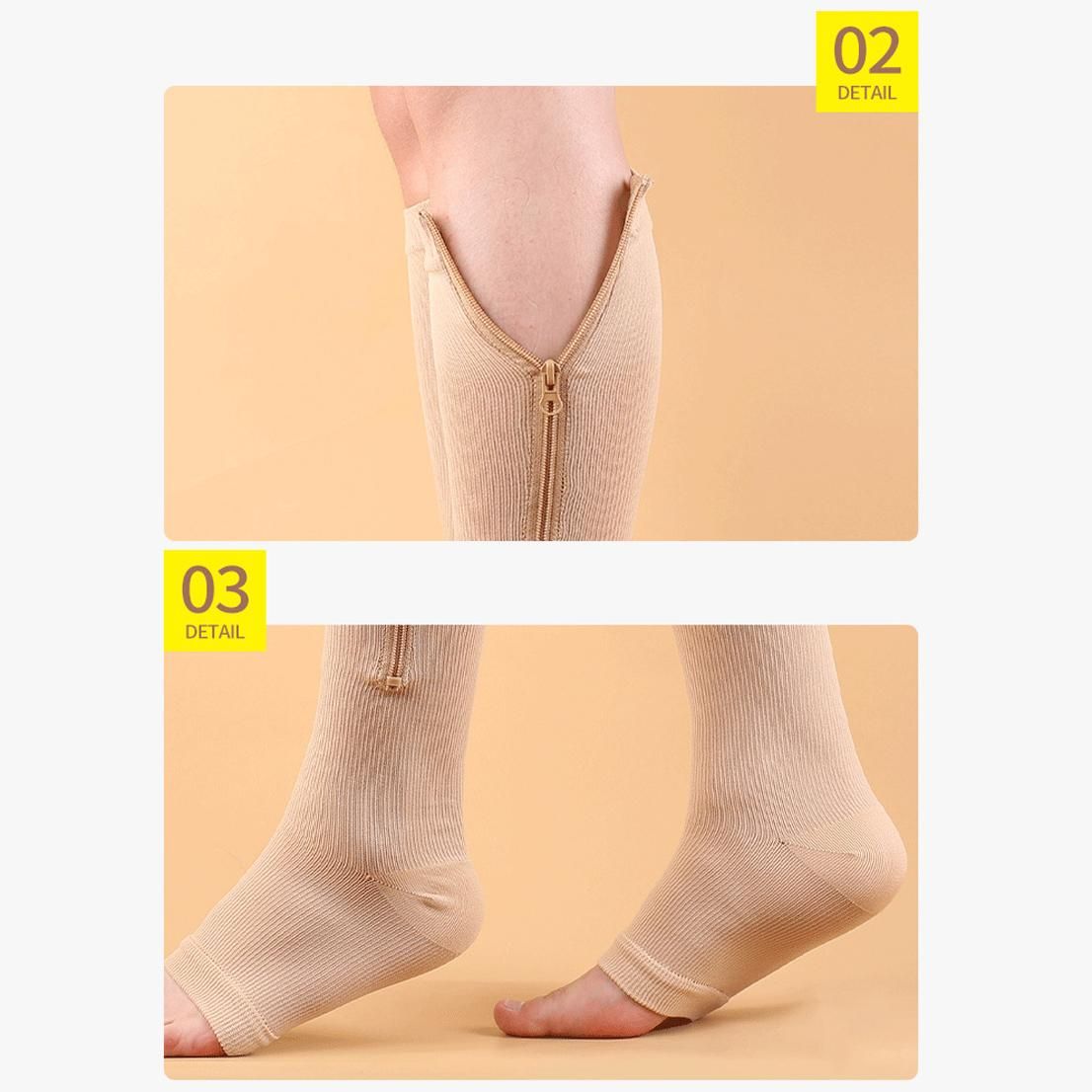 Putting on and taking off our compression socks is a breeze, thanks to the convenient zippers located at the calf. This feature adds ease and simplicity to your daily routine, allowing you to enjoy the benefits of compression without any hassle.