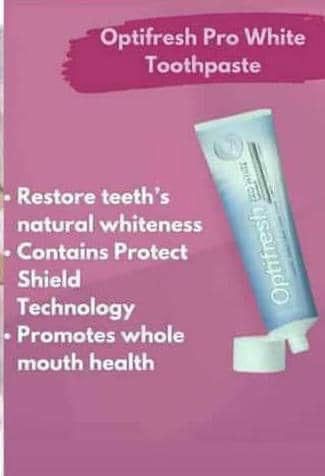 Optifresh toothpaste are of 4 different types and are very effective. It works against mouth odour, toothache, bad breath, gum pains and lots more. And price for 1 is the price list