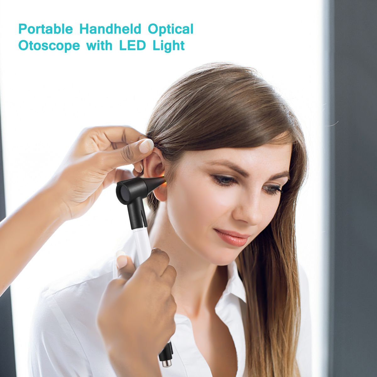 Handheld optical otoscope is a practical device for ears observation. The observation window uses glass lens with LED light, it's used for viewing the inside of the ears.