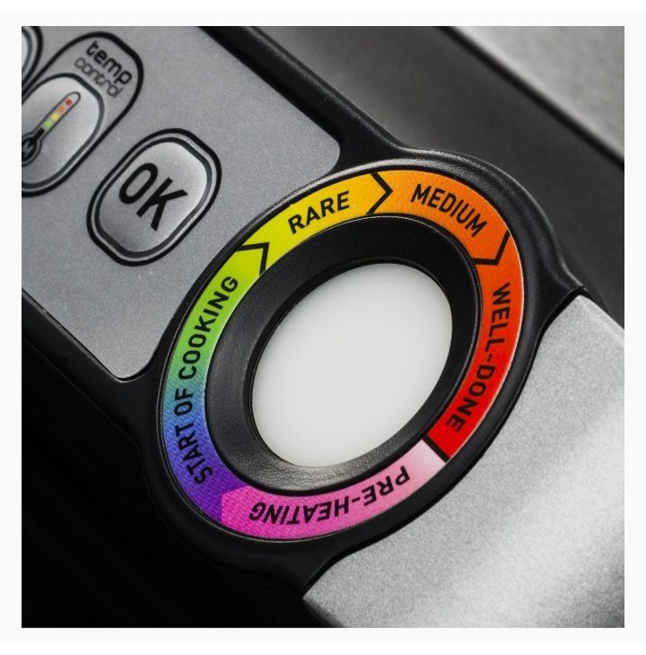 Colour-coded cooking level indicator: for perfect grilling results, OptiGrill+ monitors progress and alerts you when your meat is rare, medium or well done