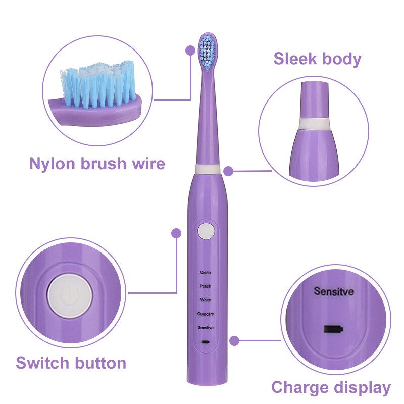 5 vibration modes are clean, polish, white, gumcare, sensitive to help reduce tooth decay.