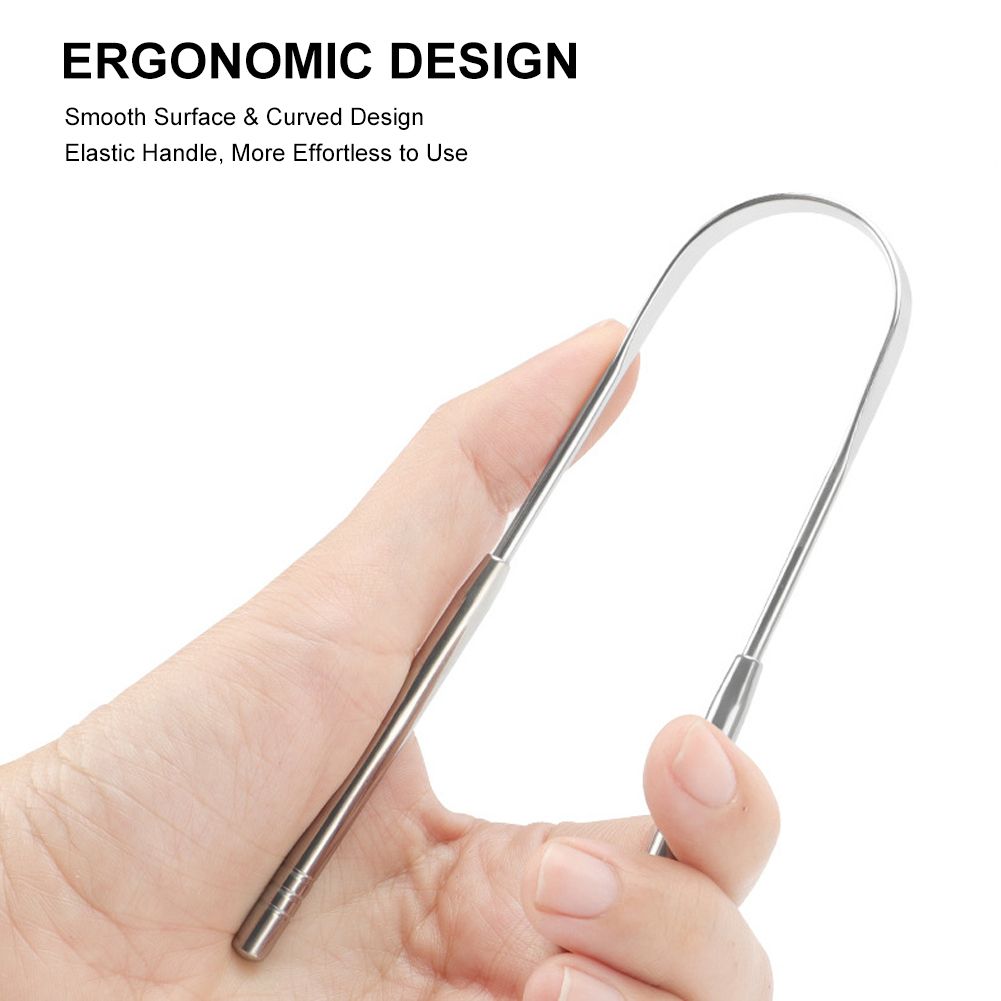 [PREMIUM QUALITY MATERIAL] Made of food-grade stainless steel material, the tongue cleaner is safe, non-toxic, rustproof, sturdy and durable, which is not easy to deform, with smooth edges and easy to clean and use.