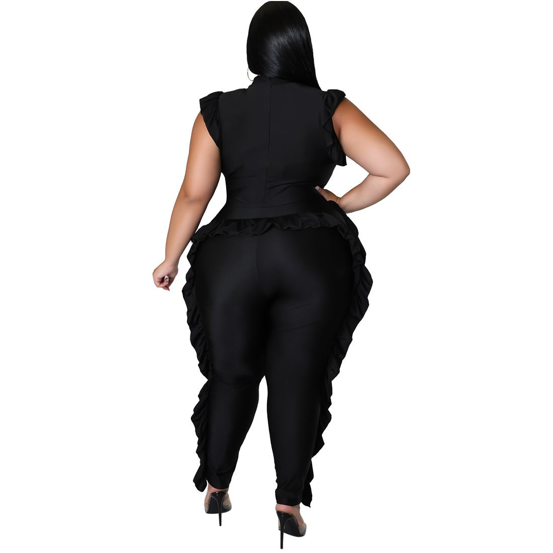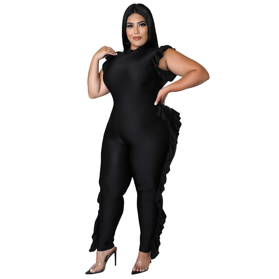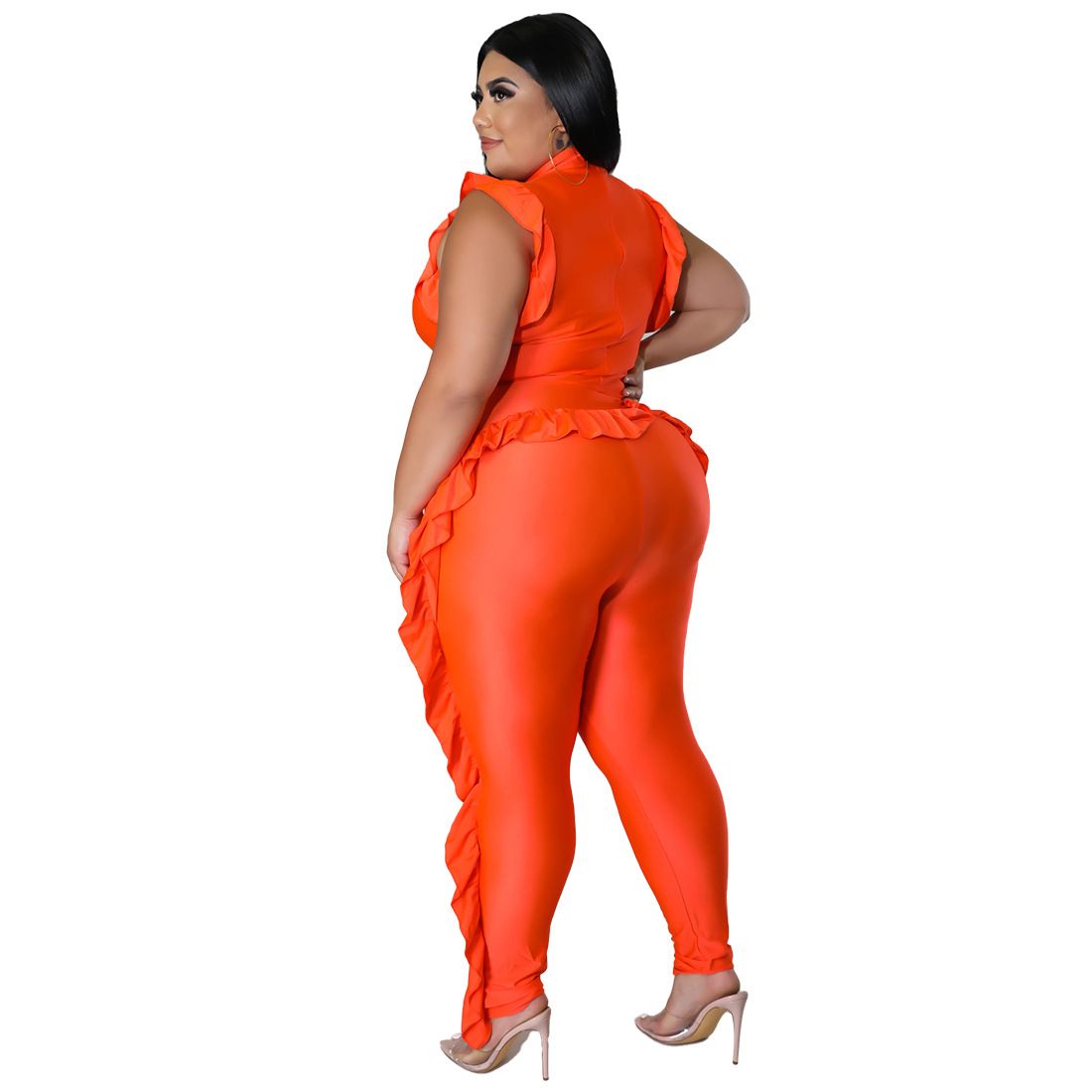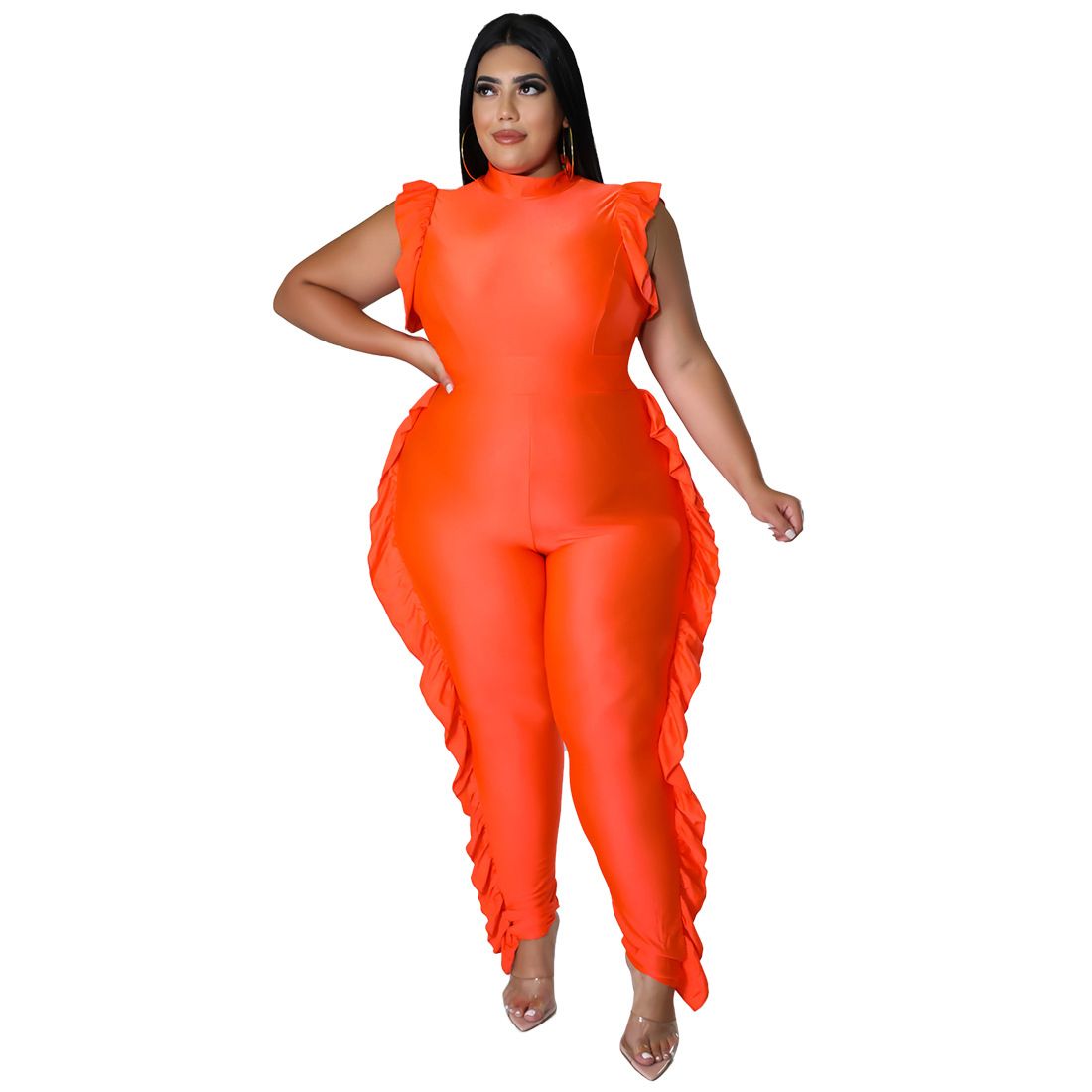 1X FS Orange Black y One-Piece Plus Size Women Clothing Sets Suit Large Size Ladies Ruffled Jumpsuits Turtleneck Summer Outfits