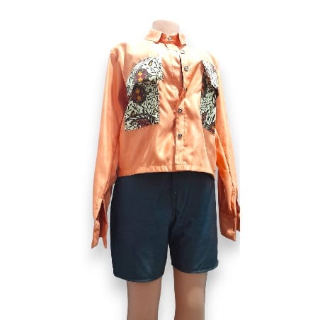 This is Orange crop shirt - a vibrant and chic addition to your wardrobe that effortlessly combines style and comfort.