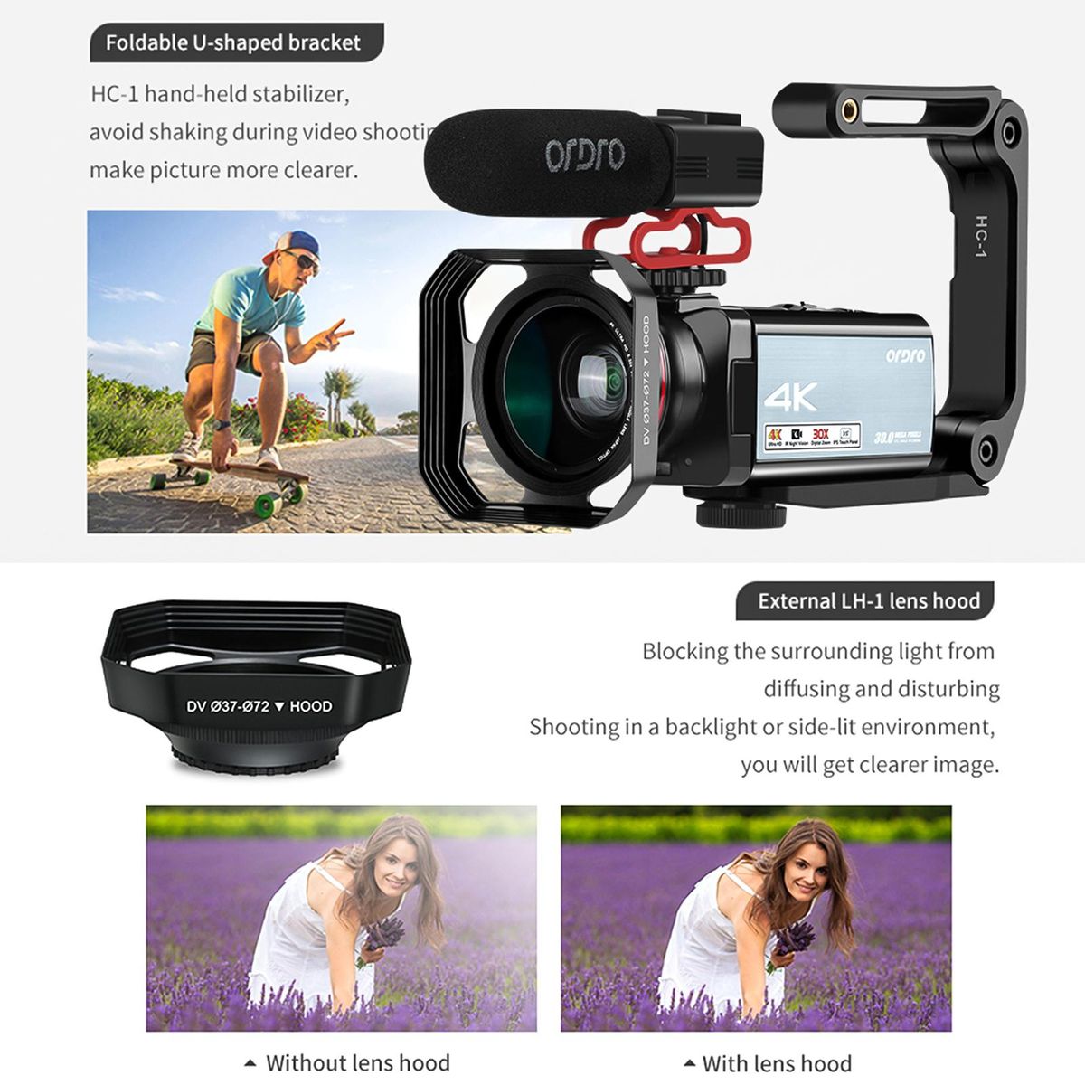 Buy ORDRO HDR-AX10 4K Digital Video Camera WiFi Camcorder DV Recorder 3.5 Inch IPS Touch Panel 30MP 30X Digital Zoom Face Detection IR Night Vision Anti-shake with Remote Control + Battery + Battery Charger + 0.39X Wide Angle Lens + Lens Hood + External Micro in Nigeria