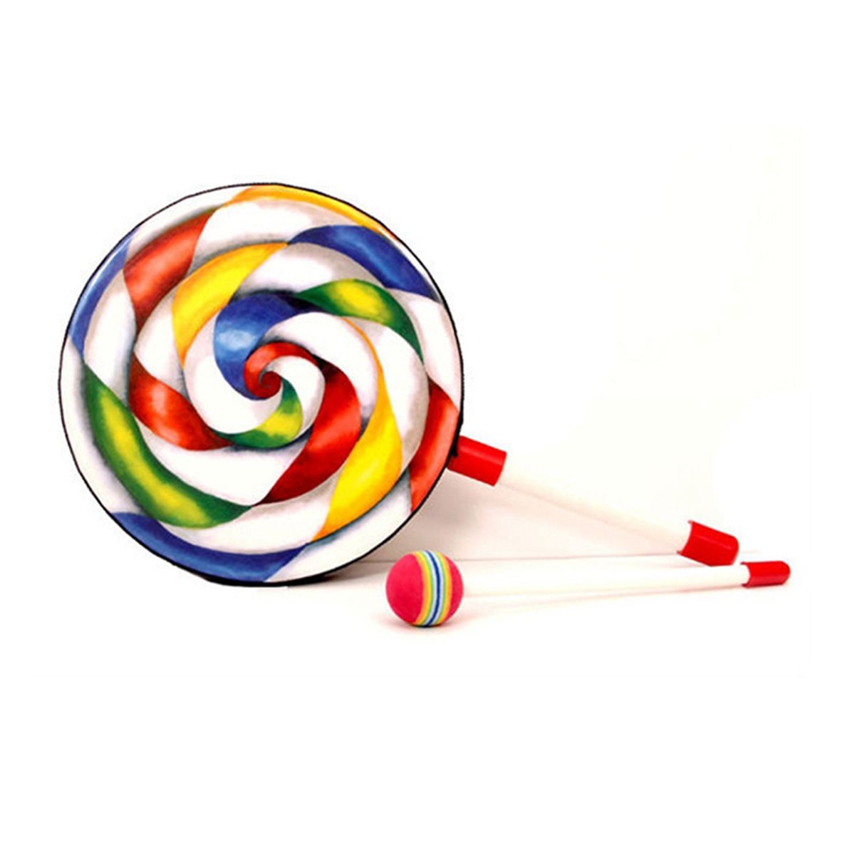 Detailed Information About The Product:The Kids Percussion Lollipop Drum is an easy to play frame drum shaped like a lollipop and features a pre-tuned graphic drumhead with a warm, resonant sound.