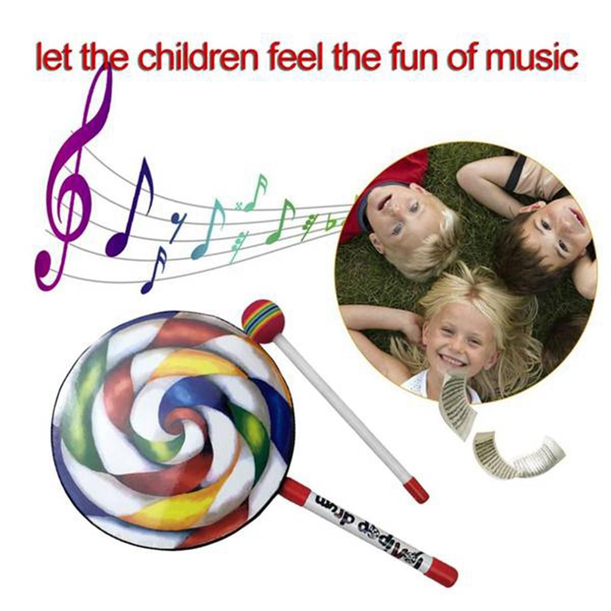 Featuring an Acousticon shell and a pre-tuned graphic drumhead, the Kids Percussion Lollipop Drum is easy to play with hands or the included mallet.
