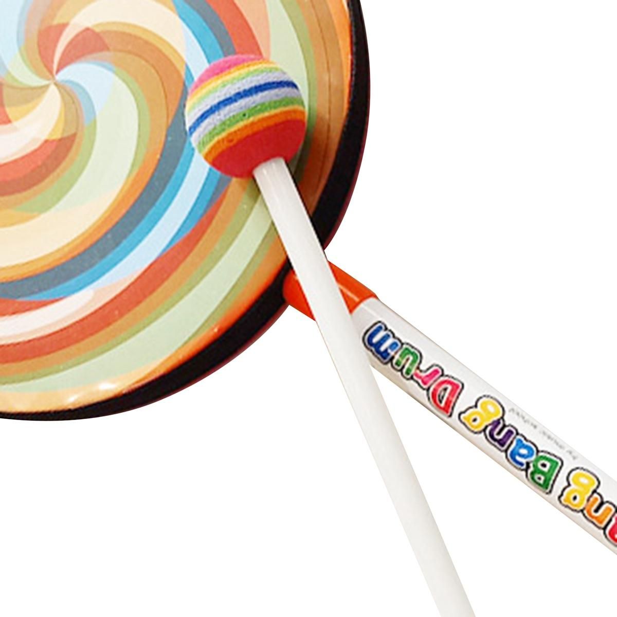Detailed Information About The Product:The Kids Percussion Lollipop Drum is an easy to play frame drum shaped like a lollipop and features a pre-tuned graphic drumhead with a warm, resonant sound.