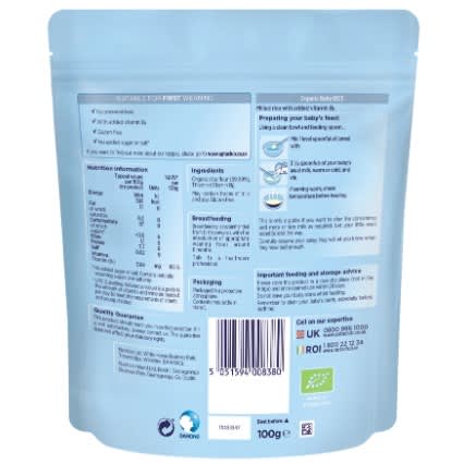 EU Organic Certified: This cereal meets strict European Union organic farming standards, ensuring the highest quality for your baby's first foray into solid food.