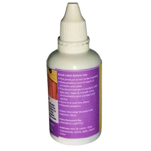 4 Bottles of DeadBug Organic Bedbug Killer. Tight-sealed, resealable, 50ml plastic bottles with a safety catch, a child lock seal, and a control dripper each