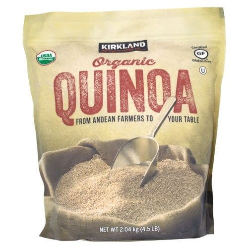 Organic Quinoa (whole grain) is considered a "super food". Organic Quinoa is gluten-free, has a mildly nutty flavor, high in protein and has a low glycemic index. This versitile grain can be used in hot or cold recipes alike and is quick and easy to prepare. Quinoa is a great alternative to rice and pasta. Kirkland Signature Organic Quinoa is versatile and nutritious. Our quinoa is loaded with fiber, vitamins B and E, important antioxidants, and more. A healthy addition to any meal.