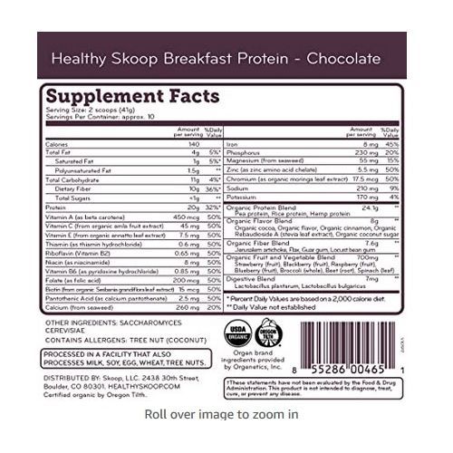 USDA Organic Healthy Skoop Breakfast Protein is USDA certified organic. QAI Certification #C0165643-NOPHPC-7 | No Funky Stuff Made without gluten, soy, whey, dairy, GMOs, funky stuff. QAI Certification #C0165643-NOPHPC-7 | Plant-Powered Great tasting, 100% Plant-Powered nutrition. QAI Certification #C0165643-NOPHPC-7 | Colorado Proud Founded in the natural foods mecca that is Boulder, CO in 2013. |