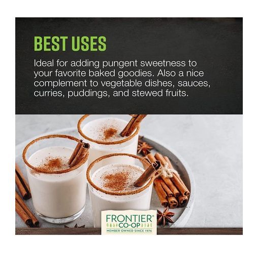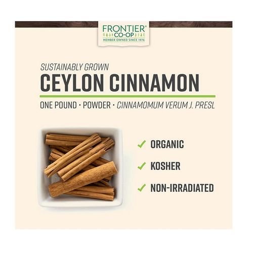 ORGANIC CEYLON CINNAMON - Frontier Co-op organic Ceylon cinnamon (Cinnamomum verum) is a flavorful, high-quality spice that comes from the bark of an evergreen tree. There are no artificial additives or chemicals used in any part of the growing and manufacturing process.