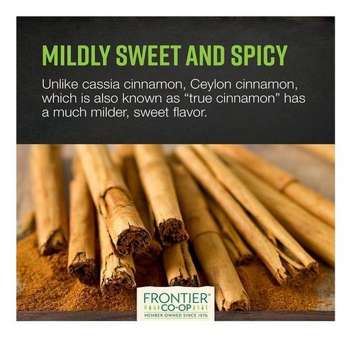 Frontier Co-op Organic Ceylon Cinnamon (Cinnamomum verum) is a flavorful, high-quality spice that comes from the bark of an evergreen tree. Our organic Ceylon cinnamon is also keto-friendly. Unlike cassia cinnamon, Ceylon cinnamon, which is also known as "true cinnamon" has a much milder, sweet flavor. The "verum" in Ceylon cinnamon's botanical name is Latin for "true."