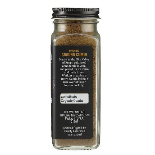 Native to the Nile Valley of Egypt, cultivated abundantly in Asia, and prized for its warm and nutty tones, Watkins organically grown Cumin brings a rich layer of flavor to your cooking.Organic CuminUSDA certified organicNon-GMO project verifiedSuperior quality, gourmet spices and herbsGluten Free, KosherCustom recyclable bottle==================Native to the Nile Valley of Egypt, cultivated abundantly in Asia, and prized for its warm and nutty tones, Watkins organically grown Cumin brings a rich layer of flavor to your cooking.