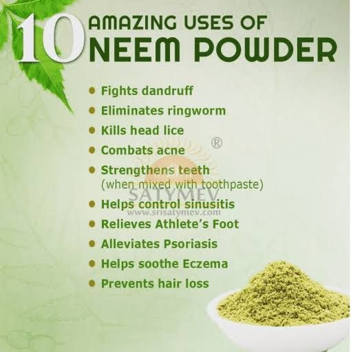 Neem contains chemicals that might help reduce blood sugar levels, heal ulcers in the digestive tract, prevent conception, kill bacteria and prevent plaque formation in the mouth.Neem leaves have anti-bacterial properties which is why it works wonders on infections, burns and any kind of skin problems. It destroys the bacteria that causes infections, stimulates the immune system and encourages rapid healing.Neem is best known for its anti-aging properties. Due to its antioxidant properties, neem protects the skin from harmful UV rays, pollution and other environmental factors. The vitamins and fatty acids in neem improve and maintain the elasticity of the skin, reduce wrinkles and fine lines. This make you and your skin look rejuvenated and youthful.Neem is also beneficial in fighting against fungal infection. Its anti-fungal and anti-bacterial properties keep the harmful bacteria and fungi at bay. Thus, it protects the skin and keeps the skin related diseases away.Benefits Of Neem For SkinNeem proves to be a miracle for people with problematic skin, thanks to its anti-fungal and antibacterial properties. Neem is a boon for people with sensitive or oily, acne-prone skin.Neem contains Vitamin C, which helps in getting rid of skin problems like blackheads, pigmentation, dullness and aging, thus leaving the skin with a youthful glow. Here are some ways in which you can use neem to get that glowing skin you have always wanted:1. Clears Acne & Dark PigmentationHow To UseBoil a concoction of about 20 neem leaves in half a litre of water till the leaves are soft and discoloured, and the water turns green. Strain and store in a bottle. Use this liquid as a skin toner by just dipping a cotton ball into it and wiping your face with it every night. Regular usage will help in clearing acne, scars (2), pigmentation and blackheads.2. Prevents Recurrence Of BlackheadsHow To UseIn case you have a very sensitive skin and are suffering from blackheads, dilute neem oil with water and apply it over the blackheads (3). Make sure that that you don't use more than 2-3 drops of neem oil. Applying this regularly will help you in getting rid of blackheads and also prevent them from coming back.3. Treats Skin InfectionHow To UseTo get rid skin of infection, prepare the concoction as mentioned above and add about 100 ml of it to your bathing water (4).4. Prevents Acne BreakoutsHow To UseTo get rid of acne, take about 10 neem leaves, boil them with small segments of orange peel in a little water. When they become a little soft, let them cook a little and then pound them into a pulp. Apply this to your face and let it sit till it starts drying after which you can rinse with cold water. This face pack will help in clearing acne and prevent breakouts (5). It also helps in getting rid of whiteheads and blackheads.Note: In case you have very dry skin, you can add a little honey and yogurt to this pack.5. For Clear And Glowing SkinHow To UseAnother effective remedy for acne and pimples using neem is to make a paste of neem leaves and turmeric and use it twice a week. Regular usage gives you a clear and flawless skin (6). You can also add some grated cucumber to it as well.6. Treats PimplesHow To UseJust like neem, tulsi is another herb that has many benefits for the skin. Grind together a few neem leaves with a handful of tulsi leaves or you can use the powder form of both, if they are available to you. Mix it with rose water to form a paste and apply it to naturally treat pimples (7).7. Controls Excess OilsHow To UseOily skin beauties who are looking for some sebum control can make a paste by mixing neem powder with lemon juice and a little bit of yogurt. This will not only control the excess oil but also prevent acne and infections that are common problems associated with this skin type (8).8. Adds Glow To The SkinHow To UseFor getting a glowing skin with a clear complexion (9), mix neem powder with rose petal powder, yogurt, and a little milk to make a smooth paste. Apply it and let it rest for 15 minutes and rinse with water that is mixed with 2-3 tbsp. of rose water.Note: You can also add fuller's earth or gram flour to this pack to make it into a scrub.9. Lightens Skin PigmentationHow To UseTo get rid of pigmentation and blemishes on the skin, mix neem powder, with tulsi powder, sandalwood powder and rose water to make a fine paste. Apply the paste on your face and let it dry before you wash it off with cold water. Regular usage will help in lightening the blemishes (10).10. Treats Skin DrynessHow To UseNot many people know about the moisturising properties of neem but, nonetheless, neem helps in getting rid of dryness of the skin without making it oily, thus giving a very balanced effect (11). Mix neem powder with some water and few drops of grape seed oil and apply it to your face.11. Delays Signs Of Skin AgeingHow To UseNeem contains immune-stimulating compounds and regenerative properties that help the skin fight pathogens below the skin surface, thus keeping the skin remain supple. Applying neem oil on your face or adding neem powder to your face packs helps in soothing the skin and reducing the effects of ageing (12).12. Treats Skin Allergies & InfectionsHow To UseNeem has anti-inflammatory and analgesic properties that help in soothing the skin in case you are suffering from some skin allergy or infection (13). Boil the neem leaves & apply the water on the allergy after refrigerating it so that it cools down.13. Heals PsoriasisHow To UsePsoriasis is a skin disease that is not only painful but also leaves your skin looking as if its burnt. The most common problem associated with this disease is dryness and scaling. Neem oil helps in getting rid of itchiness and irritation. It also helps in keeping the skin moisturised, thus reducing the dryness and scaling. The antibacterial properties also prevent the development of any further skin infections (14).14. Treats EczemaHow To UseEczema is a skin disorder which ma