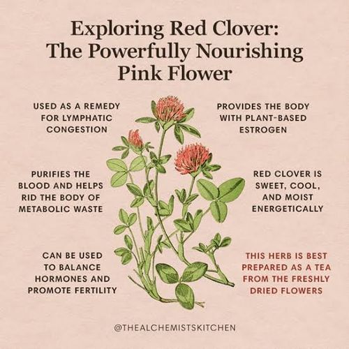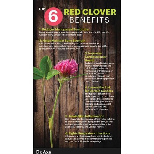 Red clover is an herb used in traditional medicine to treat a wide range of health issues, such as hot flashes, osteoporosis, arthritis, and skin and hair disorders. Some research has found taking 40-80 mg of red clover daily may help reduce severe menopausal hot flashes.it's widely used as a traditional medicine to treat osteoporosis, heart disease, arthritis, skin disorders, cancer, respiratory problems like asthma, and women's health issues, such as menstrual and menopausal symptoms.Red Clover has been found to contain estrogen mimicking flavonoids, known as phytoestrogens these substances can contribute to maintaining normal estrogen levels during the menopause. This is especially helpful in reducing hot flashes and night sweats - two of the most common symptoms experienced by women in this change of life.Studies have shown that it also improves cardiovascular health and lowers the bone density loss of menopausal women. Red Clover's estrogen-like properties exert a positive effect on the arterial walls, making them more flexible, thus easing any strain on the heart and making it harder for blood clots to form.Other research shows that Red Clover's isoflavones may slow down bone loss and even increase mineral density in menopausal women, reducing the risk of osteoporosis.It has also been found that the isoflavones found in Red Clover can reduce the risk of depression and anxiety in post-menopausal women. Researchers recruited more than 100 post-menopausal women over the age of 40 and randomly assigned them to receive either the Red Clover isoflavones or a placebo. Measures of depressive and anxiety symptoms showed that anxiety was reduced by 76 percent and depression by 78 percent.