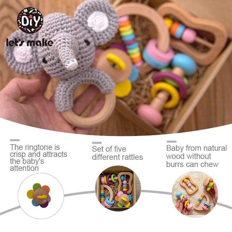1X Organic Safe Wooden Toys Baby Toddler Toy DIY Crochet Rattle Soother Bracelet Teether Set Baby Product Montessori Toddler Toy