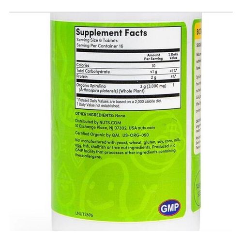 Gear up your diet the green way with Organic Spirulina tablets. Considered a complete protein, Organic Spirulina is an alga (or type of seaweed) that contains all 9 essential amino acids which help repair muscle tissue, improve metabolism and prevent hunger. This alga is also loaded with vitamins A through E, iron, potassium, calcium and immune-boosting antioxidants. When taking spirulina in high amounts, it's easier and faster to take it in tablet form as opposed to mixing into beverages and meals. Bottle contains 100 tablets in all.