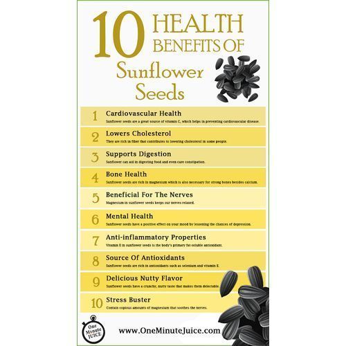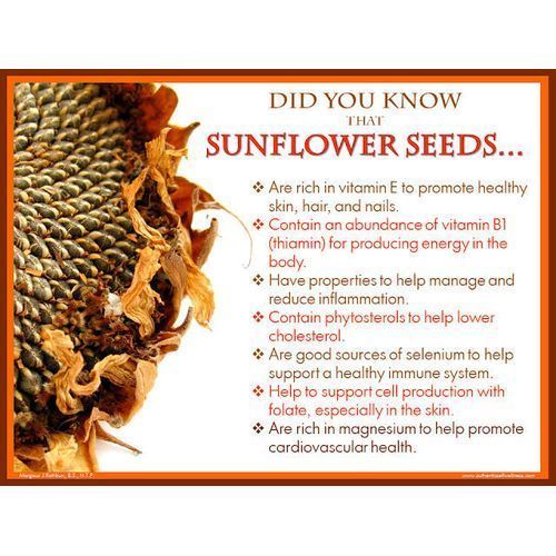 Sunflower seeds are a great health-promoting snack. They have a vast amount of vitamins and minerals that can have health benefits once consumed. They contain vitamin E, which neutralises free radicals and helps maintain a healthy heart and energy levels for general vitality. Vitamin E is also important for the immune systems natural defenses, which can help you stay fit and healthy throughout the year.