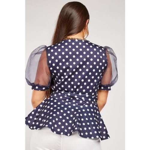 Buy Organza Sleeve Polka Dot Top - Blue/ White in Nigeria
