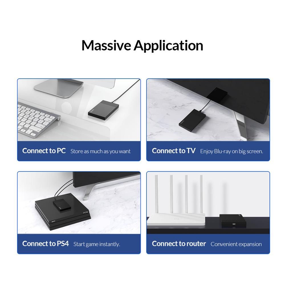 Wide Compatibility - ORICO hard drive enclosure supports Windows / mac / Linux syst. Designed for 7mm/9.5mm 2.5 inch hard drives, and max support 4TB. It fits for SATA hard drives such as WD, Seagate, Toshiba, Hitachi, Samsung, Crucial, SanDisk, etc. And can be used for computers, TVs, smart s, PS4, XBOX and other devices.