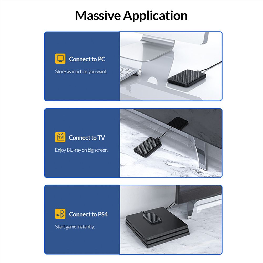ORICO 2520C3 Type-C Hard Disk Drive Case 4TB 2.5 inch SATA HDD SSD External Box USB 3.1 Mobile Enclosure Specification: Brand: ORICO Model: 2520C3 Colour: Black Material: ABS Main Control Scheme: JMS576 Output Interface: USB 3.1 GEN1 TYPE-C Transmiion Speed: 5Gbps Support Capacity: 4TB Cable Length: 0.5m/1.64ft Featured Function: Smart Sleep Applicable for 2.5-inch SATA hard disk general support 7-9.5mm 2.5-inch SATA hard disk or SSD solid state hard disk on the market Support System: for Windows7/8/10/XP, for MAC OS, for Linux Product Size: 128 X 80 X 15mm Cable Type: USB C To USB C/USB C To USB A Note: Due to the different monitor and light effect, the actual color of the item might be slightly different from the color showed on the pictures. Thank you! Please allow 1-2cm measuring deviation due to manual measurement. 1 X HDD Case 1 X USB C To USB C/USB C To USB A