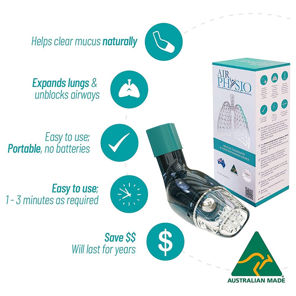 Unlike our competitors, AirPhysio is INTERNATIONALLY AWARD WINNING & Made in Australia, the drug-free handheld device is used to clear the airways, improve breathing and therefore potentially reduce symptoms in the following medical conditions: Asthma, Atelectasis, Bronchiectasis, Chronic Obstructive Pulmonary Disease (COPD) Emphysema and Chronic Bronchitis, Cystic Fibrosis, Emphysema and many more respiratory conditions.