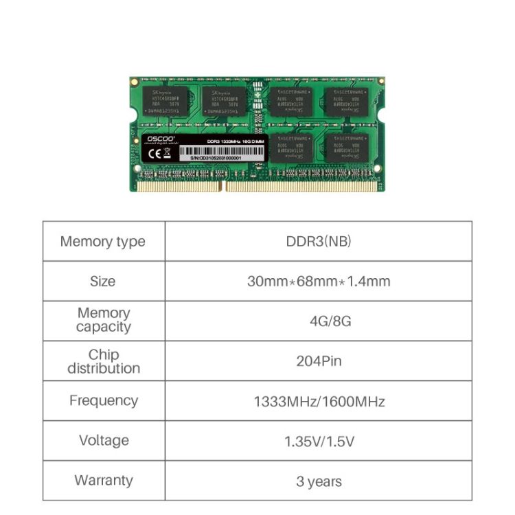 OSCOO DDR3 NB 1600MHz Memory, Memory Capacity: 8GB