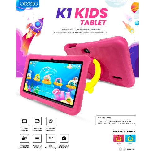 Buy Oteeto K1 Kids Android Tablet - 7" - 128GB ROM - 4GB RAM - 5G Wi-Fi Network - 3000mAh - Pink in Nigeria