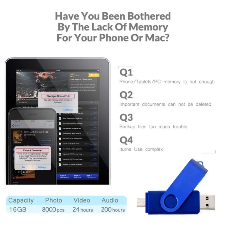 1.Essential detailsProducts Status:NewPlace of Origin:Guangdong, ChinaMaterial:MetalBrand Name:OEM/ODMInterface Type:USB 2.0Product name:OTG Dual USB Flash Memory Sticks Flash Disk 128GB256GB 512GB 2.0 3.0Package:Poly BagCompatibility:Windows 8/7/Vista/xp/2000Chip:A-class Flash ChipReading speed:8-16MB/sWriting Speed:4MB/s - 15MB/sTransfer Rate:USB 2.0 / USB 3.0Certificate:CE FCC ROHSData Retention:10 Years MinimumCertification:FCC, ce, RoH2.About capacity:The hard disk/flash memory supplier is using the decimal algorithm: 1MB = 1000KB, calculated 1G = 1000MB, but the operating system is using a binary algorithm: 1MB = 1024KB, 1GB = 1024MB. Therefore, there are some differences between the display capacity and the nominal capacity of hard disk/flash memory products. However, this is allowed. Please don't doubt his authenticity.