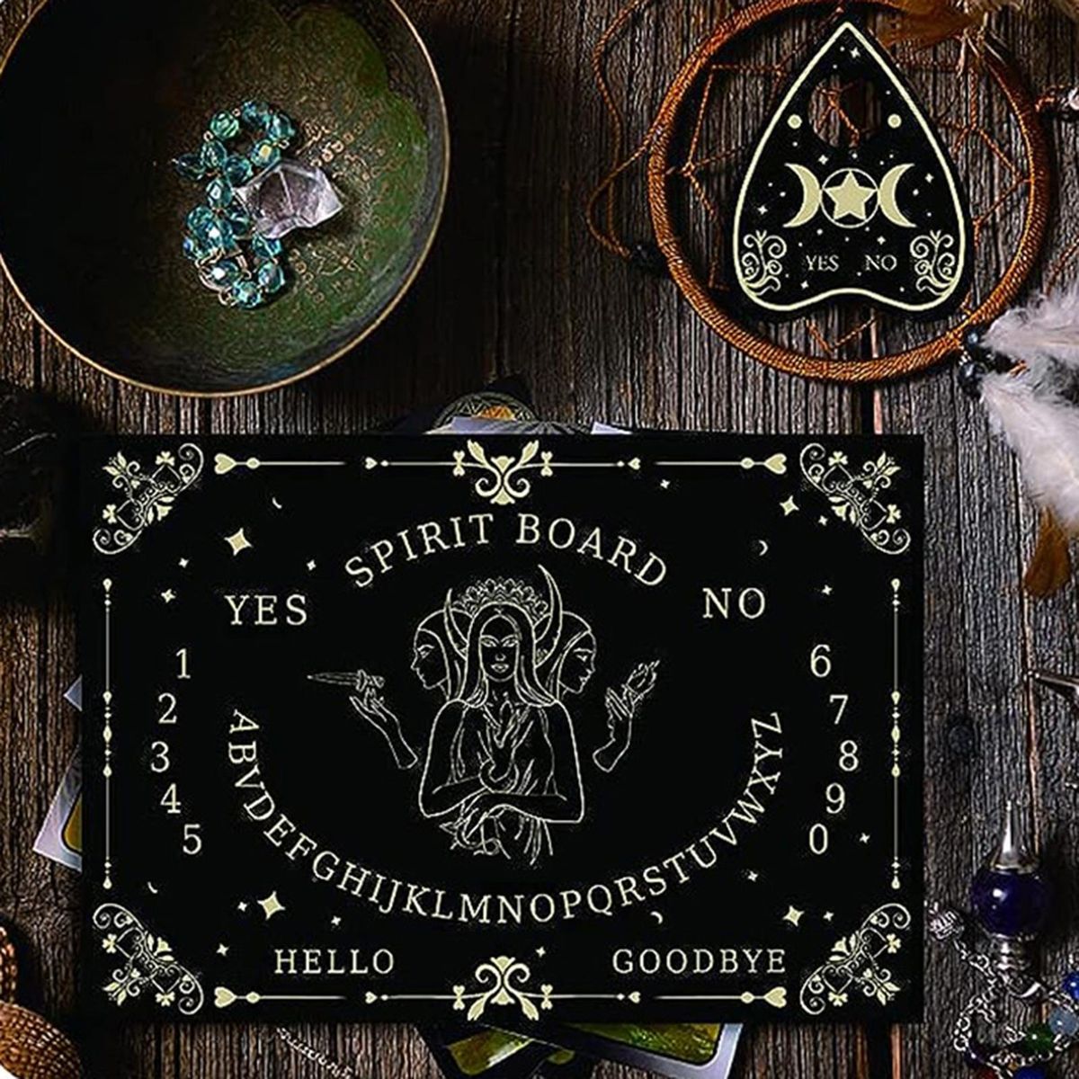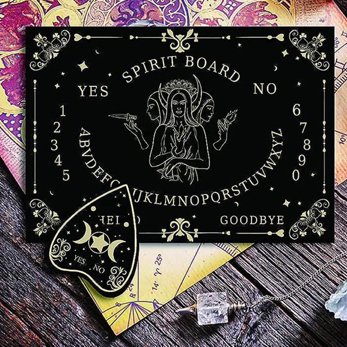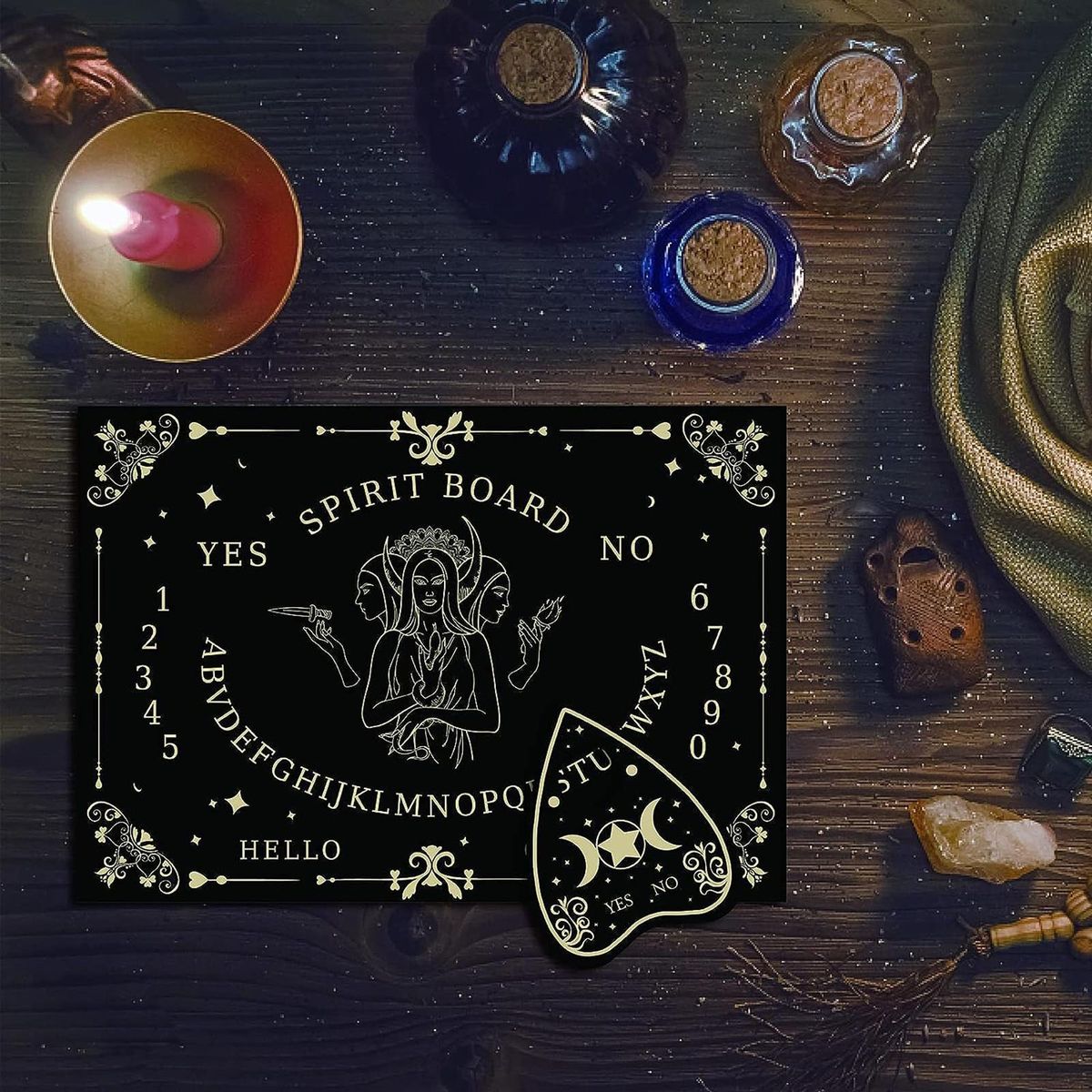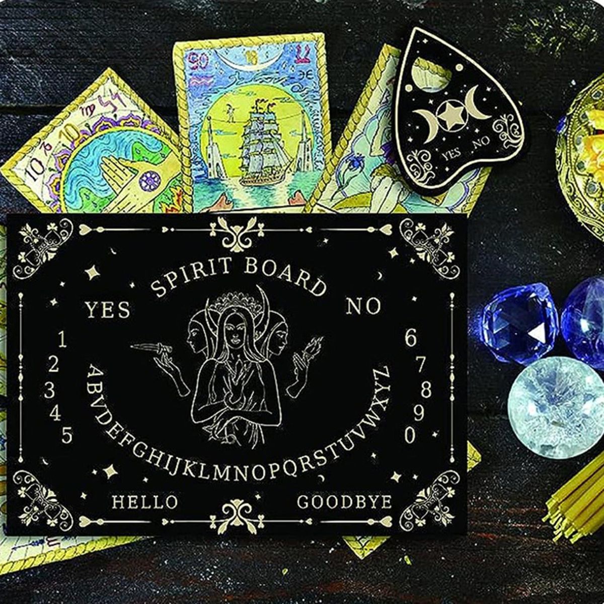 The captivating and mystical ouija talking board, a must-have tool for anyone seeking guidance and clarity in their life. shake the triangular pointer and receive a clear yes or no answer to any burning question, providing indisputable guidance and improving decision-making.