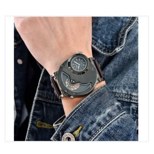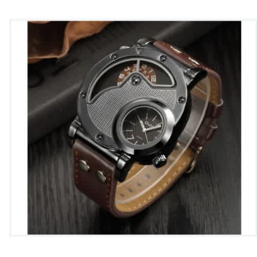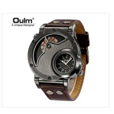 Buy Oulm Men's Leather Strap Wristwatch - Two Time Zone Wristwatch - Brown in Nigeria